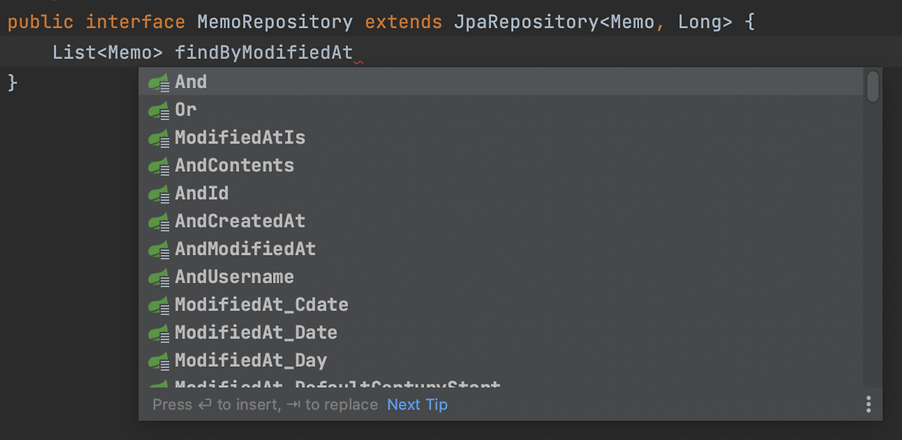 - findAllByOrderByModifiedAtDesc 해당 메서드 이름은 Memo 테이블에서 ModifiedAt