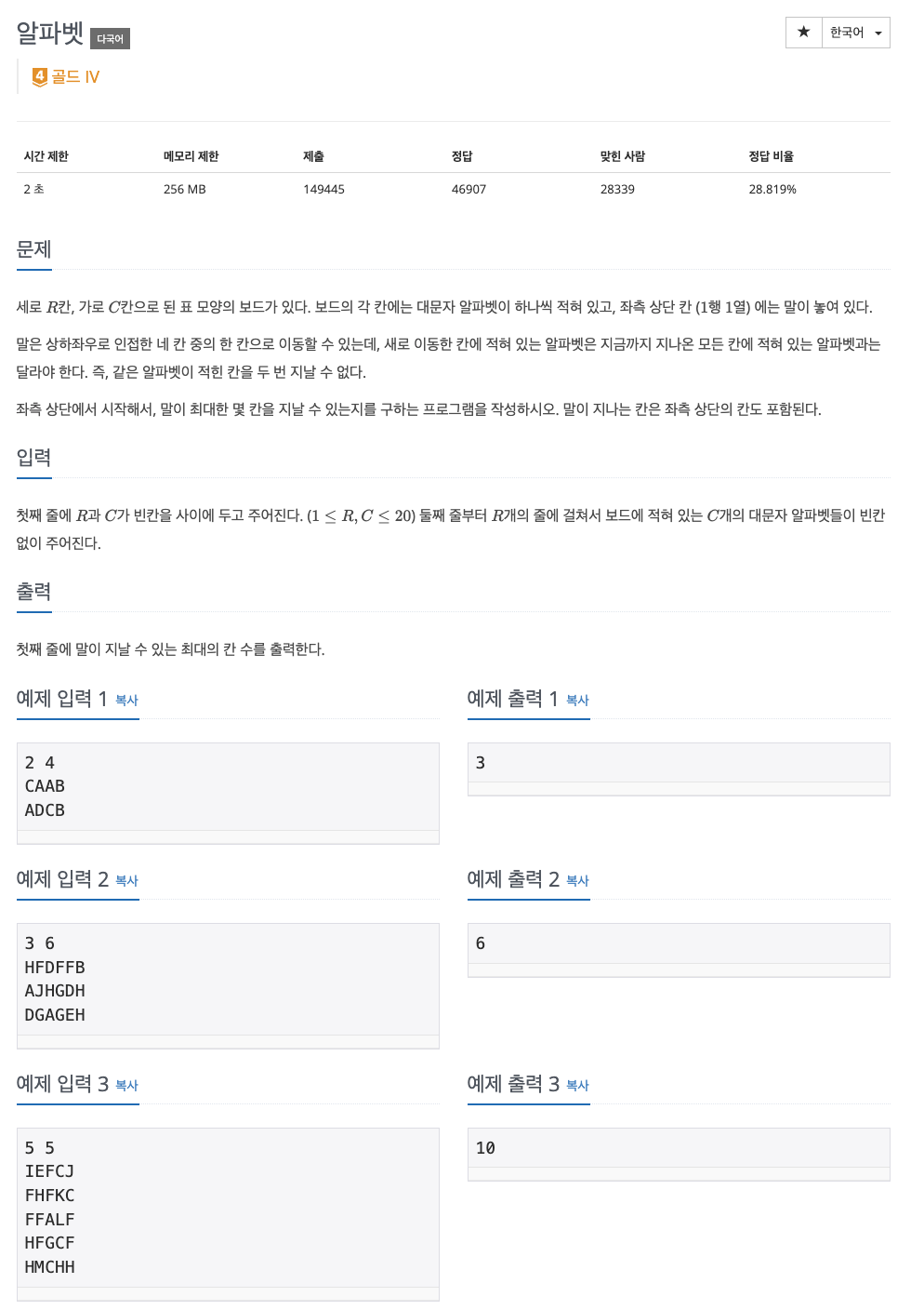 [Backtracking] 백준 1987번 : 알파벳백준/Backtracking2025. 9. 25. 00:39
