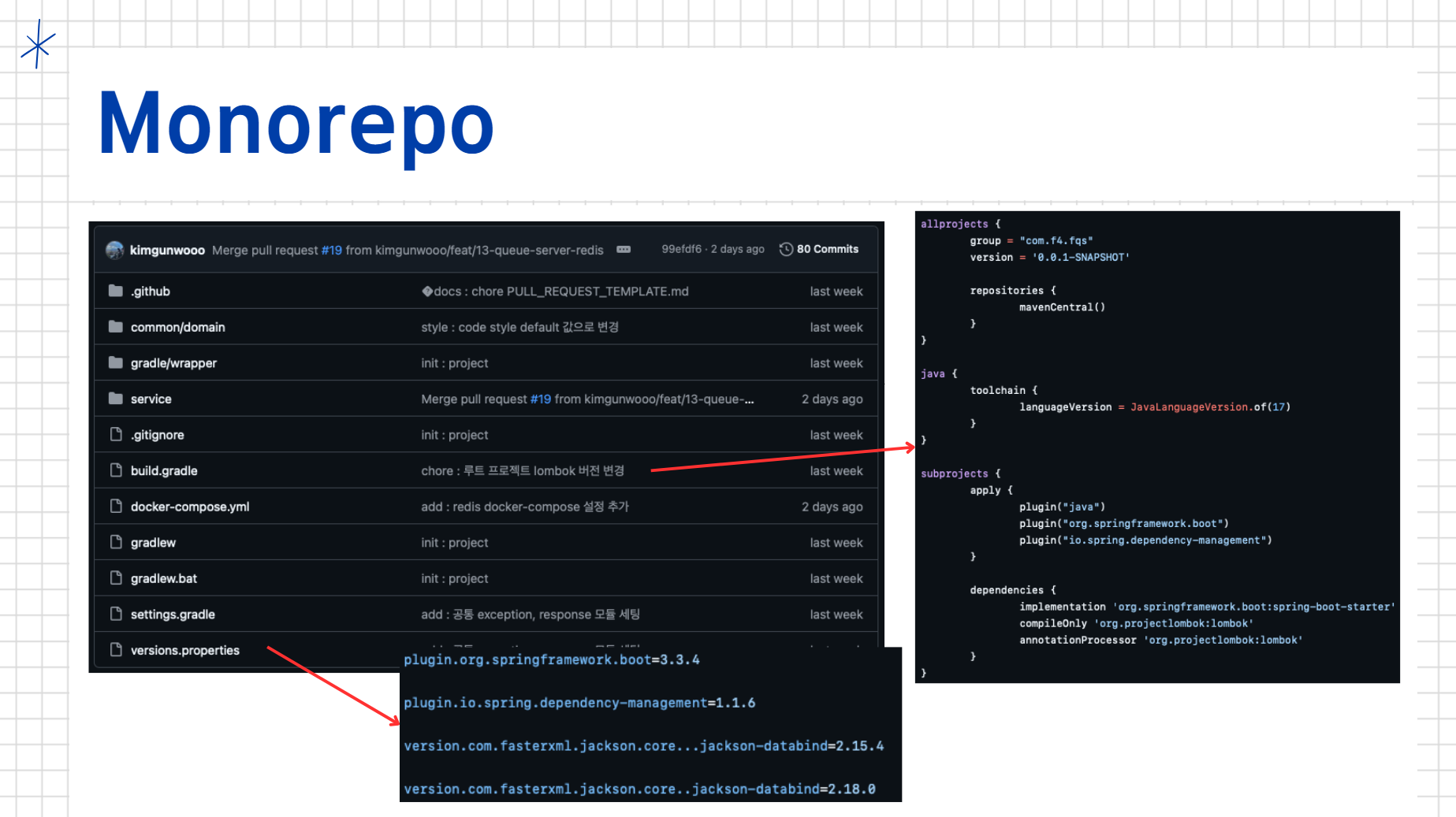 Monorepo를 통해 멀티모듈 구조를 채택했고, 루트 프로젝트에서 각각의 서브 프로젝트를 관리하고
