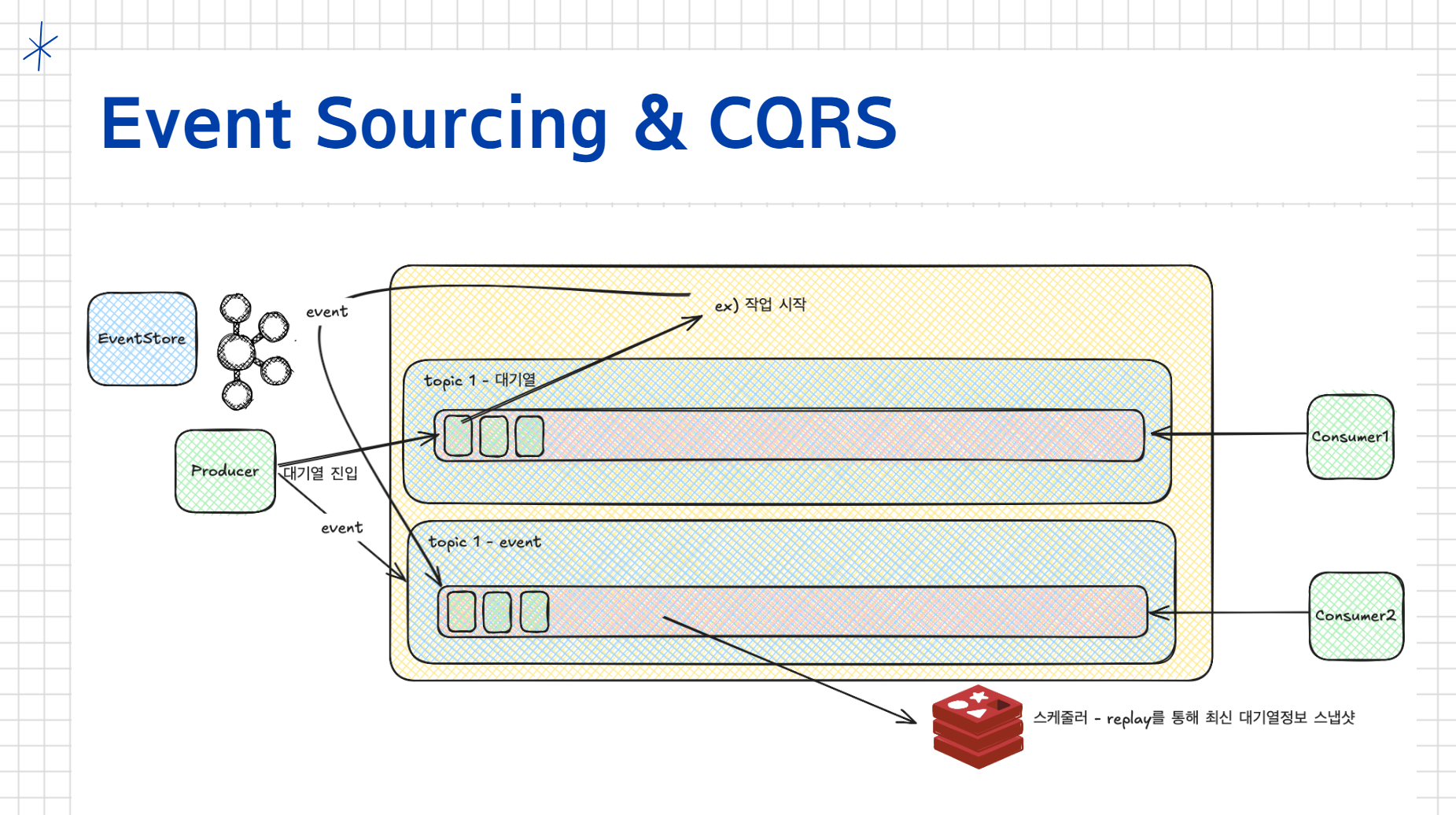 스케줄러가 주기적으로 replay를 통한 최신 대기열 정보를 스냅샷으로 제공해 각각의 사용자는 현재 순번을 확인할 수 있게 된다.